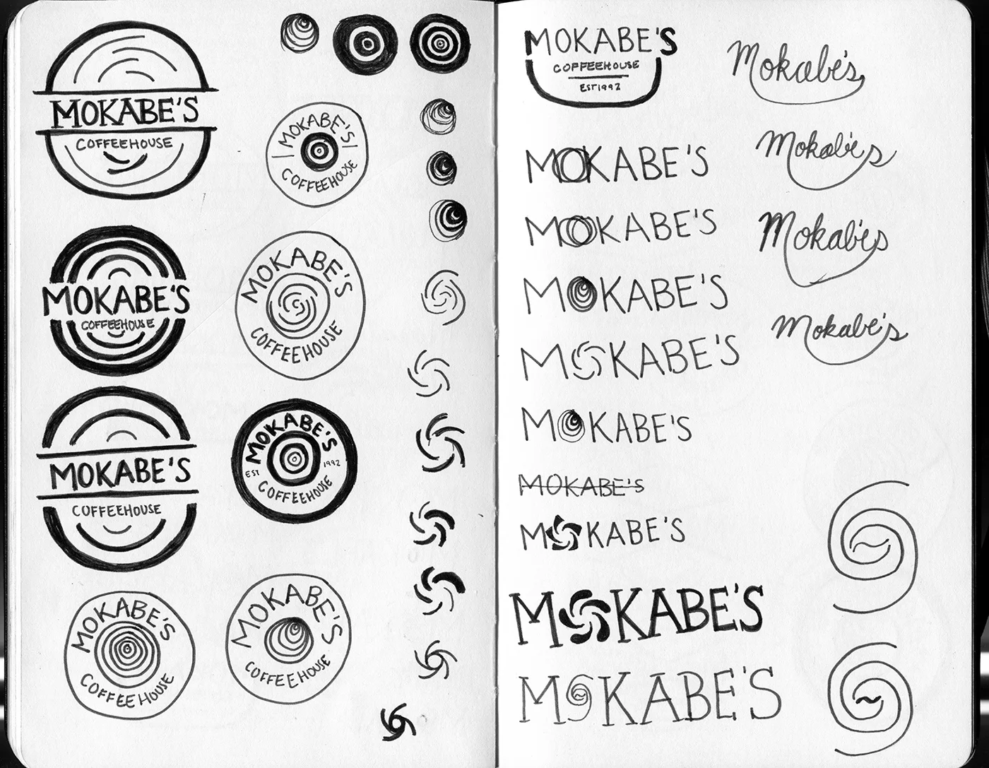 Before beginning logo development, I made a word map of the unique attributes of the restaurant. Mokabe's has a very progressive feel in part because of their decor, which includes Black Lives Matter signs and other political messages, and also because of the safe space they have established for people of all races, sexualities, identities, etc. through hosting various meetings, inclusive messaging, and more. They often act as a place where different people in the community come together. These attributes are what I aimed to convey through my tagline and brand attributes.